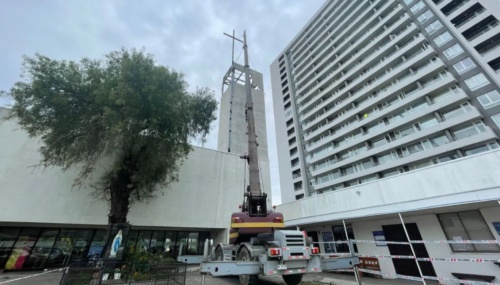 Inician trabajos de restauración del campanario de la Parroquia San Juan de Mata