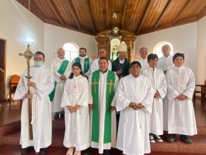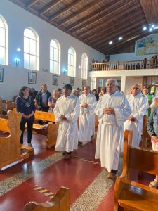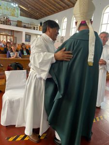 La Eucaristía fue presidida por el Obispo Auxiliar de Concepción y Vicario Episcopal de Arauco, Monseñor Oscar García, quien agradeció a Dios por el don del llamado de los nuevos candidatos y “por la gracia que nos concede como familia, como Iglesia, como comunidad”.