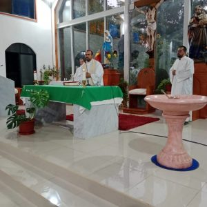 A través de un video, el Párroco de Inmaculada Concepción de Santa Juana, Padre Ricardo Valencia, invitó a “dar gracias a Dios por tantos que han llegado hasta Santa Juana a compartir con nosotros”.