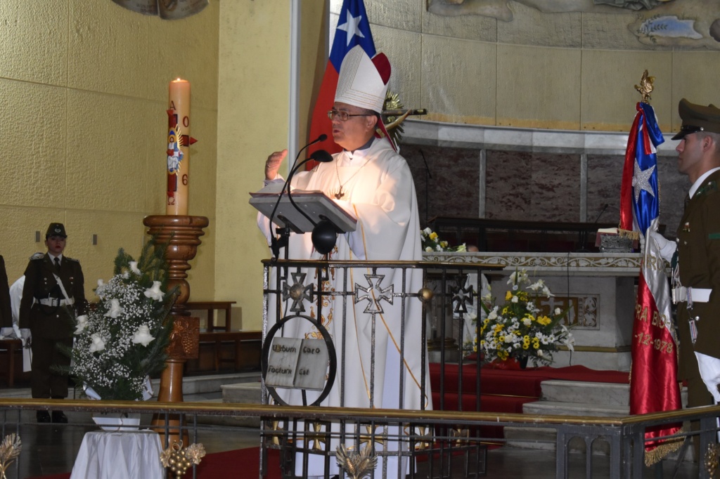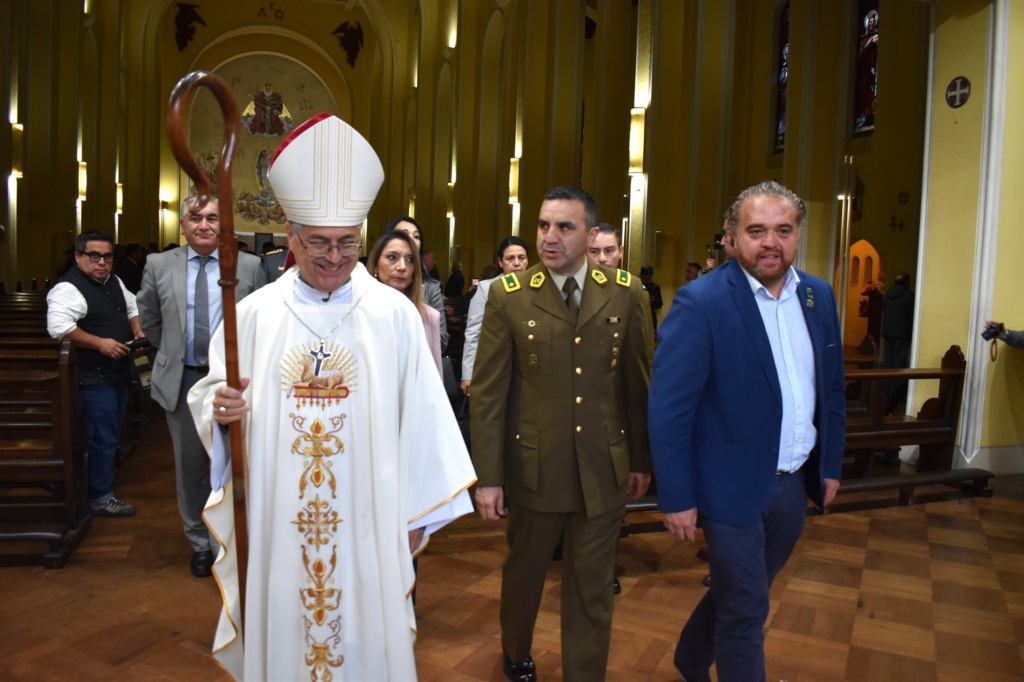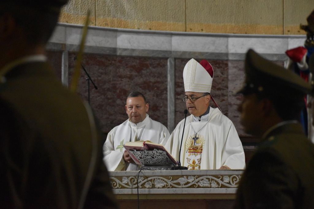 Monseñor Sergio también dijo “así como Jesús no vive para hacer su voluntad, ojalá que nosotros vivamos también para la misión, una misión que está más allá de la voluntad personal, y que nos entreguemos a una causa superior, grande, que está más allá de nuestros propios intereses: es la misión que en este caso la Patria les encomienda como Carabineros. También podemos aprender esa actitud de Jesús, vivir para hacer una voluntad superior”.