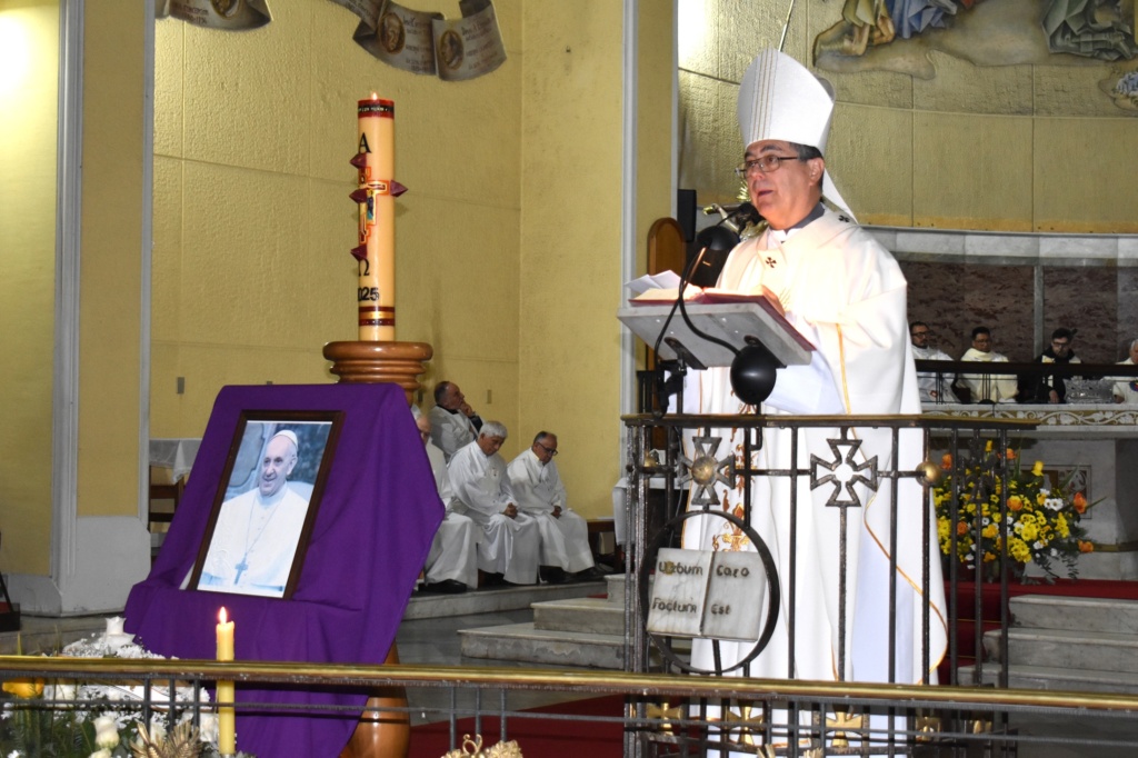 Durante su homilía, el Arzobispo expresó que “la vida de Francisco nos ha hablado; él ha sido un testigo del Evangelio y una voz distinta, profética, en medio de la humanidad”. Añadió que su partida nos invita a reflexionar sobre su legado: “No pretendo agotar en estas pocas palabras toda la riqueza de la vida y del magisterio de Francisco, simplemente quisiera destacar algunos aspectos que nos permitan dar gracias a Dios por el Papa que nos dio y que seguirán como desafíos que tenemos que asumir como cristianos”.