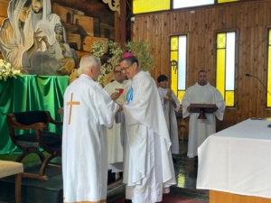 En una eucaristía presidida por el arzobispo de Concepción, monseñor Sergio Pérez de Arce, asumió como Responsable Parroquial, el diácono Claudio González Larenas el pasado domingo 2 de febrero. Monseñor Sergio Pérez de Arce expresó a la comunidad parroquial los motivos por lo que se ha encargado esta responsabilidad pastoral al diácono Claudio González: “Conversando con el P. Claudio Alarcón vimos que podía asumir como responsable don Claudio, que conoce la parroquia, está aquí hace tiempo, es una persona de confianza, que ustedes lo valoran, y que puede conducir la vida de la parroquia, él es diácono permanente, tiene todas las posibilidades de hacerse cargo” Continuó diciendo: “Según en el decreto leído, se le nombra Responsable Parroquial. Se dice que puede asumir todas las responsabilidades propias de un párroco, salvo las que requieren la presencia de un presbítero, como la confesión o presidir la eucaristía. Puede ver las cosas que están al servicio de la comunidad y conducir la vida pastoral. Dice que tiene que hacerlo en corresponsabilidad con ustedes, con la comunidad, con los organismos que tienen que estar en cada parroquia, el consejo pastoral y el consejo económico, y juntos con ellos los diferentes servicios: los catequistas, el coro, los que animan la liturgia, las hermanas que trabajan aquí en la parroquia. Con la colaboración de todos ustedes, él tiene que conducir la vida parroquial”