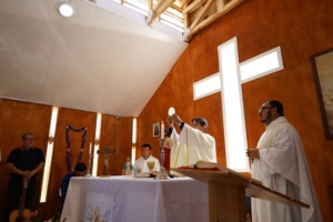 El párroco de la comunidad, padre Ricardo Valencia, aseveró que la bendición de esta capilla “es un signo de esperanza de que no estamos solos en medio del dolor” y agregó que “cuando estábamos todavía a un par de meses del incendio, la primera construcción de espacio público que se levantó fue la capilla de Poduco”.