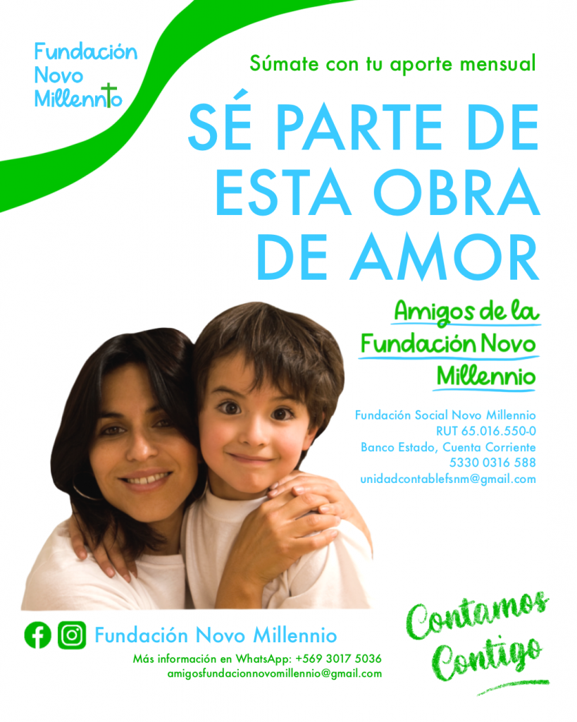 Con el lema “ Sé parte de esta Obra de Amor”, la Fundación Social Novo Millennio, institución de la Vicaria de Pastoral Social del Arzobispado de Concepción, ha lanzado la campaña Amigos de la Fundación Novo Millennio, con el fin de lograr aportes para apoyar y dar continuidad a los programas y proyectos sociales que ejecuta, cuyos destinatarios son personas, grupos y comunidades en situación de vulnerabilidad y exclusión social.