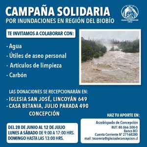 Ante la situación generada por las inundaciones en distintos puntos de la Región del Biobío, la Iglesia de Concepción ha iniciado una campaña solidaria para ir en ayuda de los afectados.