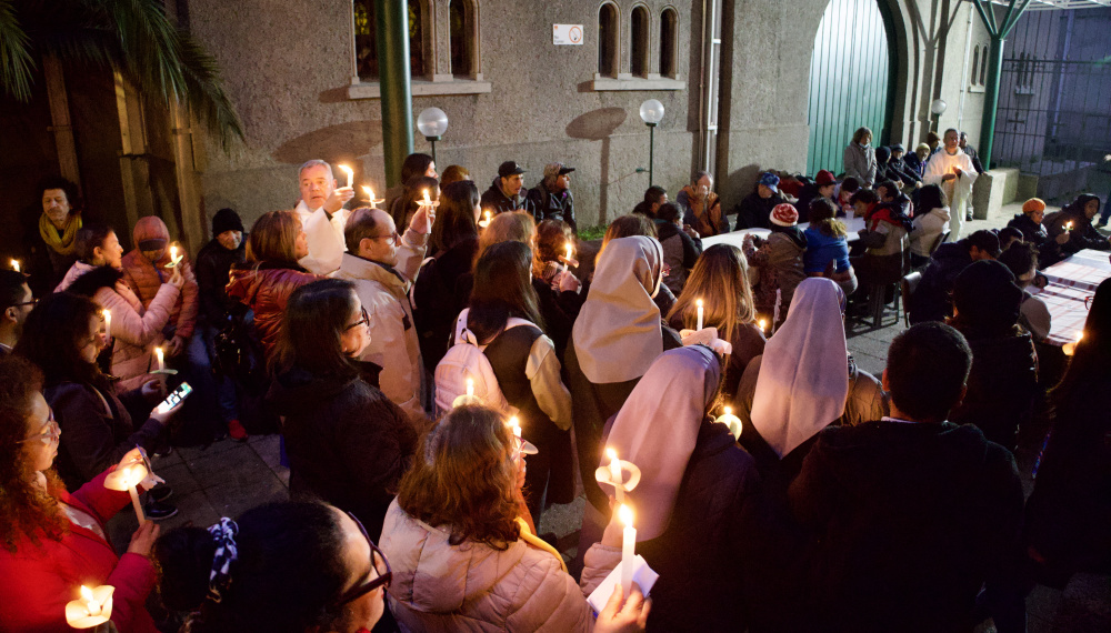 Al término de la Santa Misa, los participantes salieron en conjunto de la Catedral, acompañados de cantos y velas, para compartir un momento fraterno con los hermanos en situación de calle que asisten de la iniciativa “Espacio Misericordia”.