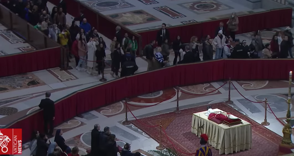 Será así hasta las 7 p.m. de esta noche. Lo mismo, también de 7 a 19 horas, ocurrirá mañana en el último día en que el cuerpo del Papa emérito estará expuesto a la devoción de los fieles.