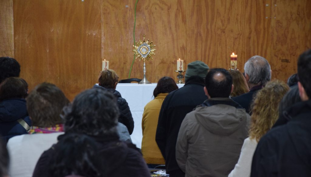 La jornada comenzó con un momento de oración cantada, animada por los cantautores católicos Fer Toledo y Pablo Choloux, luego los presentes tuvieron la oportunidad de participar en la adoración al Santísimo Sacramento, guiados por el Obispo Auxiliar de Concepción, Monseñor Oscar García; la Delegada Episcopal para la Educación y la Cultura, Adriana Fernández; y el Asesor de la Vicaría de Pastoral Social, Padre Pedro Gómez.
