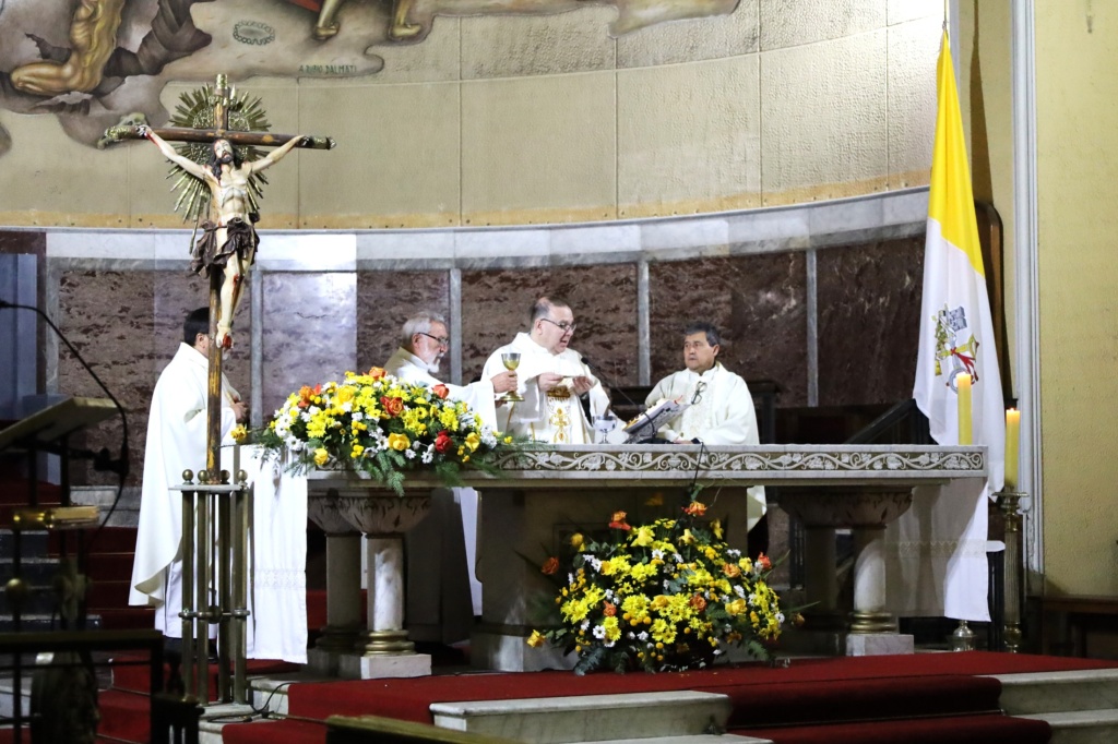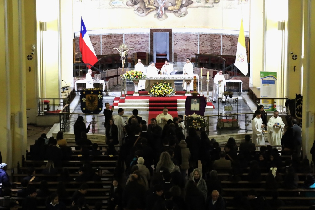 Esta mañana delegaciones de los Colegios de Iglesia de la Arquidiócesis de la Santísima Concepción se reunieron en el Templo Catedral, para ser parte de una Misa en memoria de Su Santidad el Papa Francisco. La Misa fue presidida por el Pbro. Claudio Soto, Vicario Judicial y concelebrada por los Pbros. Claudio Alarcón y Francisco Osorio, Deán de la Catedral, junto a sacerdotes y diáconos asesores de los distintos colegios presentes.