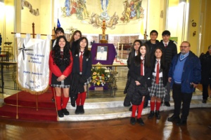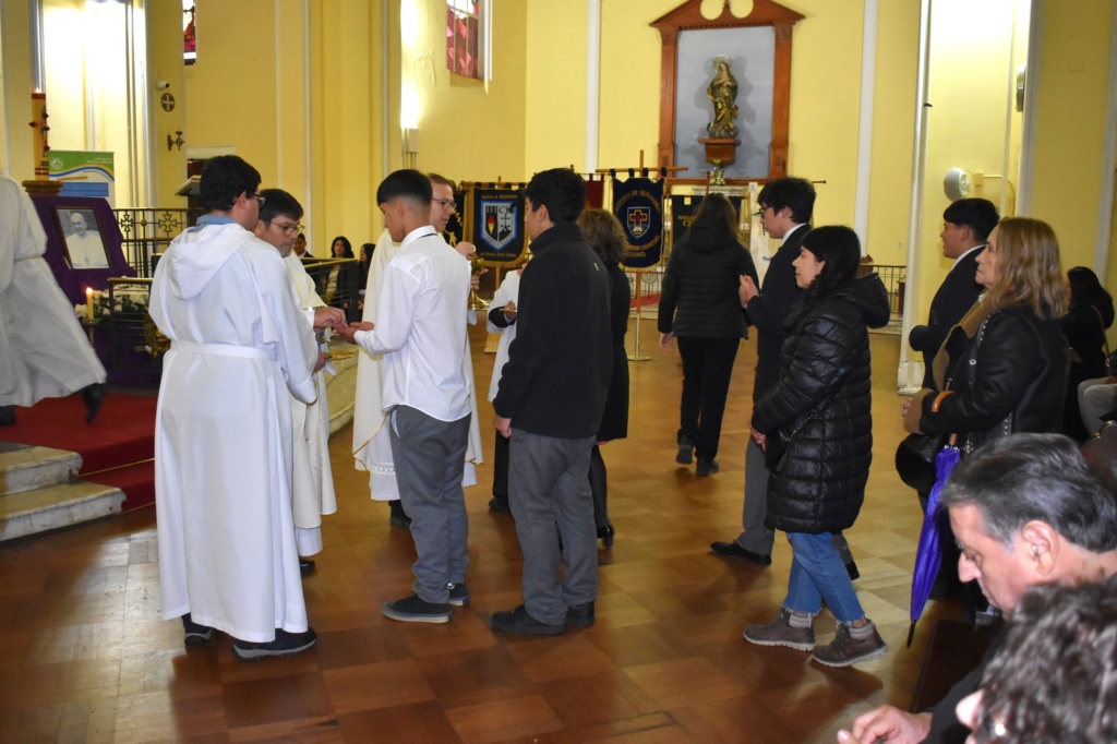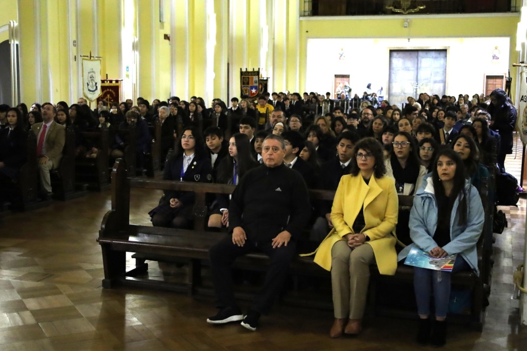 En su homilía, el padre Claudio Alarcón señaló que “el legado del Papa Francisco es extenso, más quise centrarme en tres puntos para destacar a los estudiantes y comunidades educativas. Primero, respetar a la persona no por su condición sino por ser persona; lo segundo, hacer lío, que significa dar testimonio de nuestra fe y mover la sociedad y en tercer lugar, estar siempre dispuestos como el mismo Papa Francisco lo hizo hasta el final de su ministerio”.