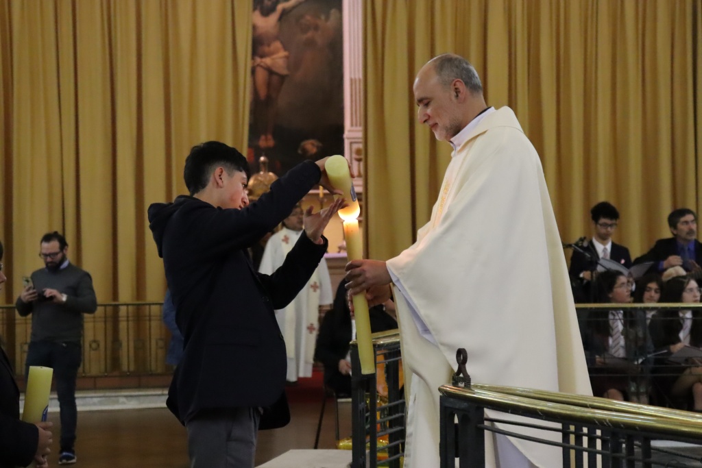 Antes de finalizar esta celebración, se realizó la ceremonia de la luz con un representante de cada colegio. El cirio o la “Luz de Envío”, que los guiará durante este año académico, simboliza la presencia de Dios con los estudiantes.