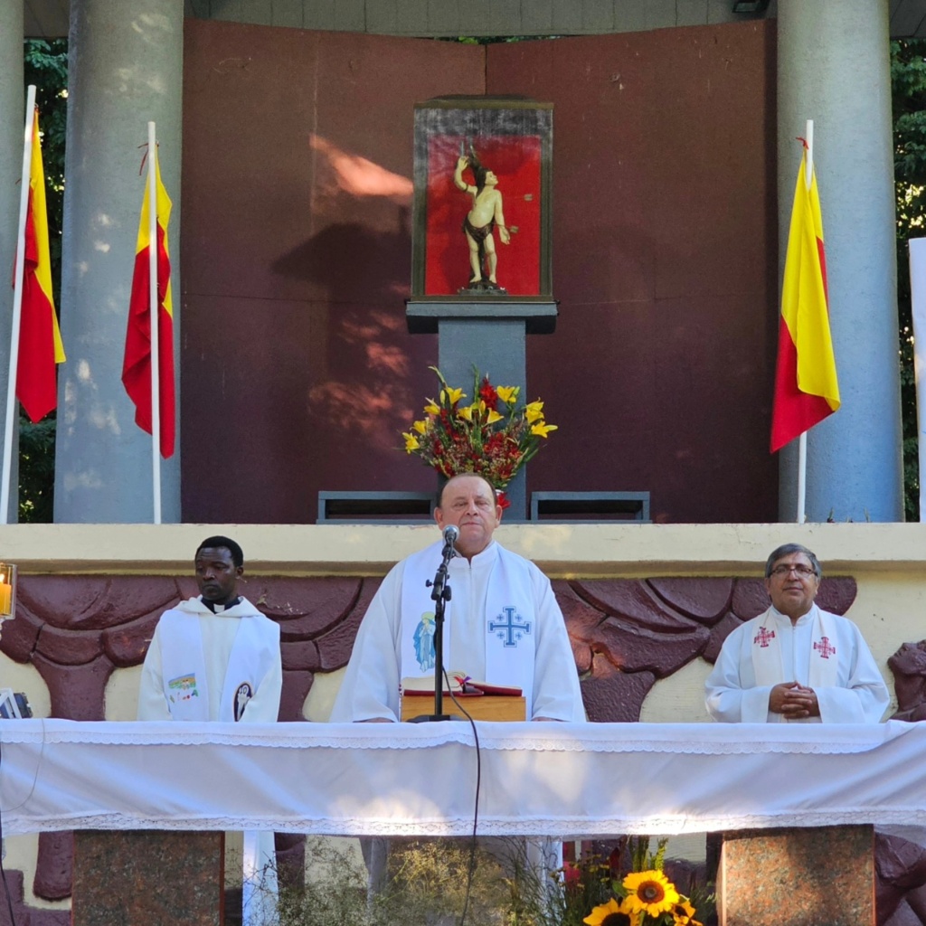 La procesión comenzó a las 18:30 horas desde la Ermita de San Sebastián y avanzó por las calles de Yumbel hasta llegar al campo de oración, donde se celebró la Eucaristía, que fue presidida por el rector del Santuario, padre José Luis Roldán, junto al padre Francis Umar y al padre Héctor Mora.