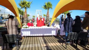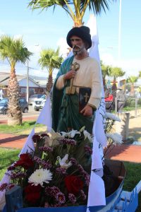 Esta fiesta religiosa comenzó con una procesión del Santo Patrono por las calles de la localidad hasta el sector norte de la costanera, donde se realizó una Eucaristía que fue presidida por el Párroco de la Cuasi Parroquia Cristo Peregrino, Padre Pablo Leiva.