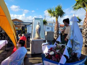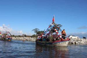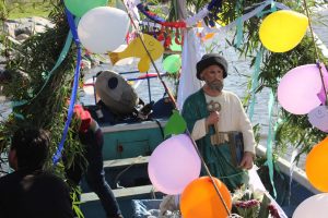 Luego se efectuó una procesión en el mar, con embarcaciones adornadas para la ocasión. Los pescadores depositaron una ofrenda floral en alta mar en honor de aquellos familiares, amigos y compañeros fallecidos buscando el sustento diario.
