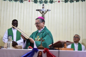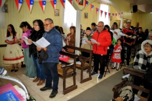 Monseñor Sergio Pérez de Arce presidió la celebración, junto los sacerdotes Germán Hermosilla y Stephen Awotwe, párroco y vicario respectivamente. El Pastor agradeció la presencia de los fieles en este día en que se ora por Chile y, también, la especial dedicación en los detalles de la Santa Misa, cuya guía y oraciones fueron escritas en décimas.
