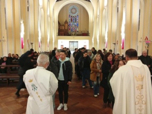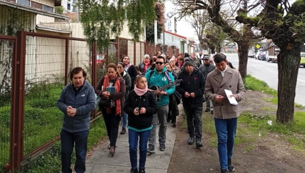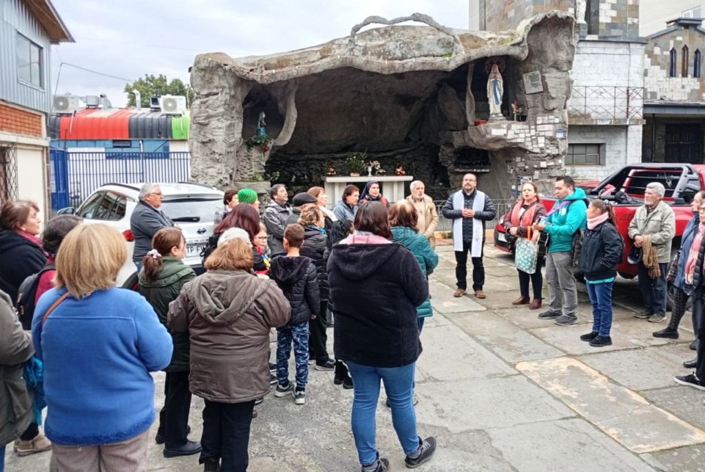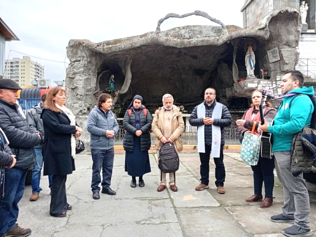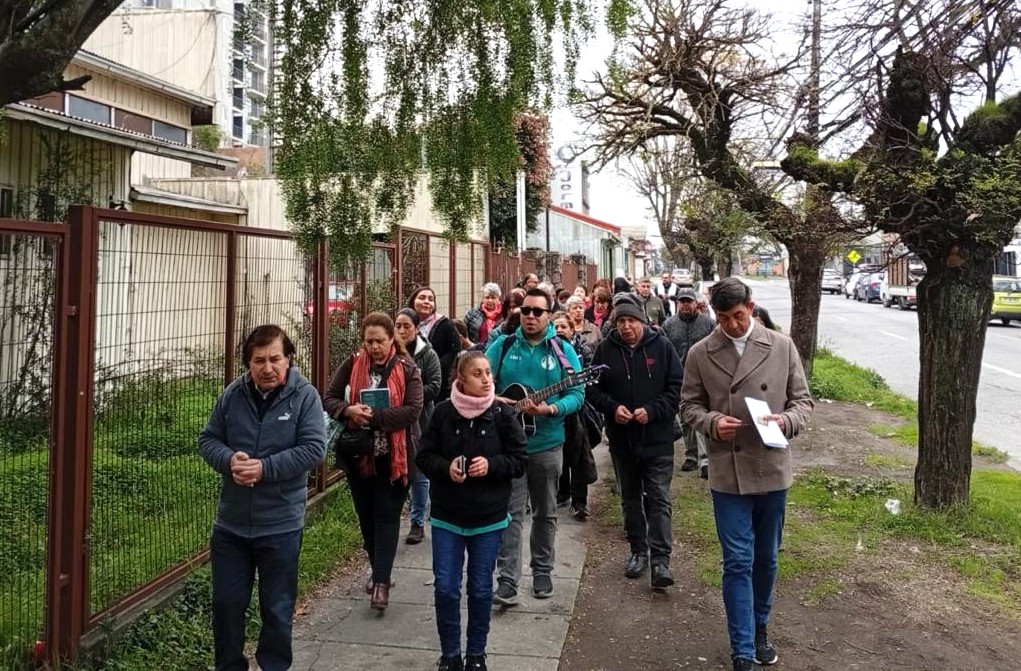 La peregrinación al templo jubilar se realizó el pasado sábado 7 de junio, con el acompañamiento del Obispo Auxiliar de Concepción, Monseñor Bernardo Álvarez. La comunidad partió desde la parroquia, cantando con el coro y rezando el Santo Rosario, llegando al Templo Catedral luego de una hora aproximadamente, para vivir la Eucaristía.