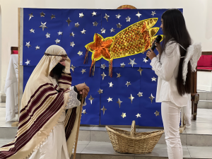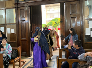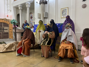 Cyndi Espinoza, quien estuvo a cargo de la coordinación de la obra de Navidad, comentó que “esta fue una actividad en la que participamos juntos como parroquia todos los grupos. Fue harto trabajo, más de un mes de ensayos dos veces a la semana, y llegaron niños con sus familias, así que este año la obra fue de niños, jóvenes y adultos. Así que estamos felices, más aún con la llegada de los Reyes Magos”.