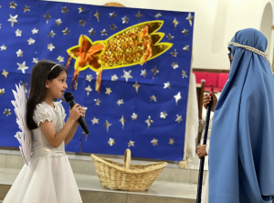 Por su parte, Frangelyth Pineda, quien interpretó al ángel que se le aparece a Zacarías, señaló que la obra “estuvo bonita, pero en el momento en que me tocó participar me puse muy nerviosa y se me olvidó lo que tenía que decir, pero me gustó igual. Estuvo bonita y creo que la gente se entretuvo”.
