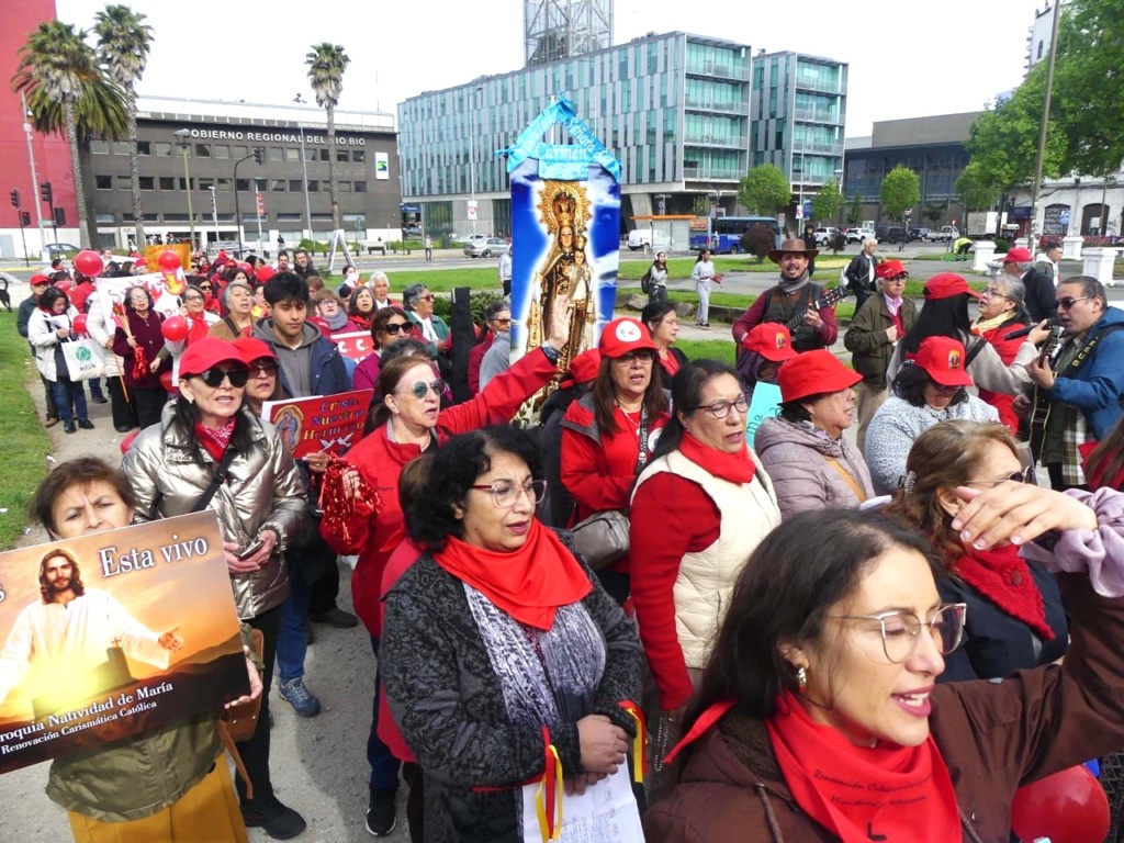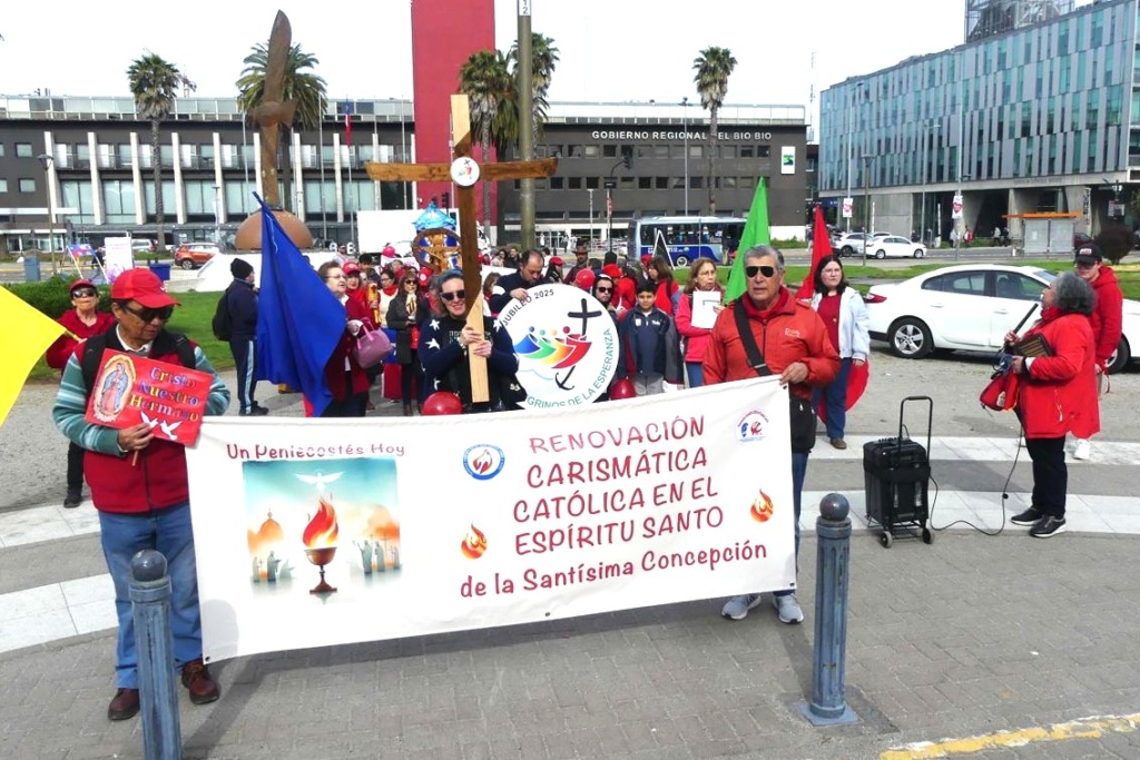 En medio de testimonios de agradecimiento y alegría por vivir este Jubileo 2025 como Peregrinos de la Esperanza y obtener la indulgencia plenaria, fieles de la Renovación Católica Carismática de la Arquidiócesis se reunieron en plaza España, para peregrinar por calle Barros Arana rumbo al templo jubilar de la Catedral de Concepción.