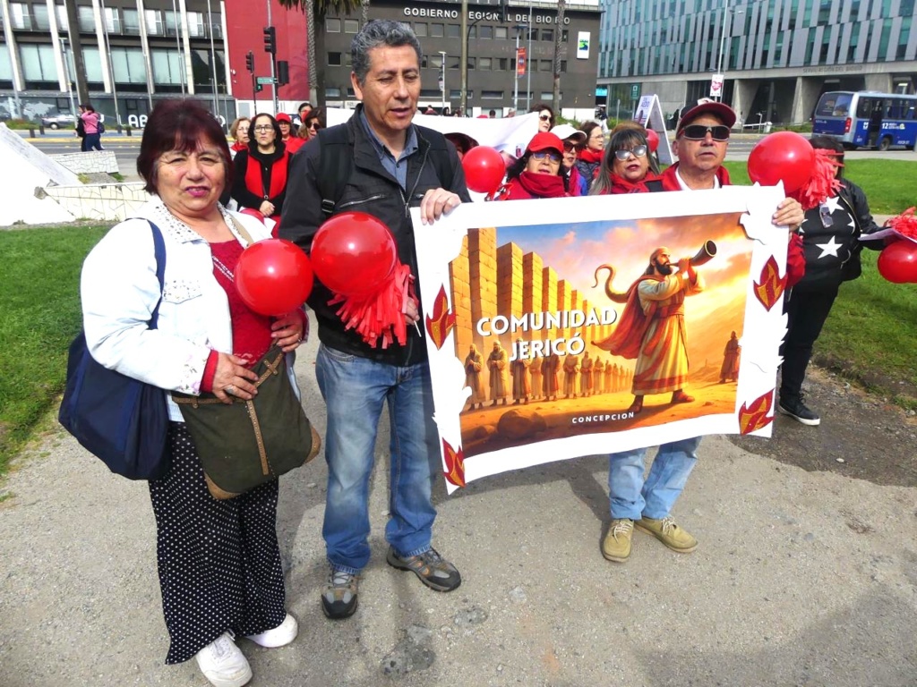 Según explicó Nancy Chamorro Sanhueza, Servidora de la Renovación Carismática de la Arquidiócesis de la Santísima Concepción, “antes de comenzar la Peregrinación Jubilar se rezó el Santo Rosario y se invocó al Espíritu Santo. Partimos cantando alabanzas con mucha alegría y nos detuvimos en cada una de las esquinas haciendo una oración muy conocida en la Renovación Católica Carismática a nivel mundial llamada ‘Cerco de Jericó’, que consiste en derribar muros por medio de la oración y la alabanza”.