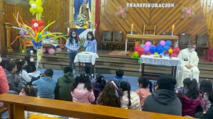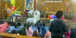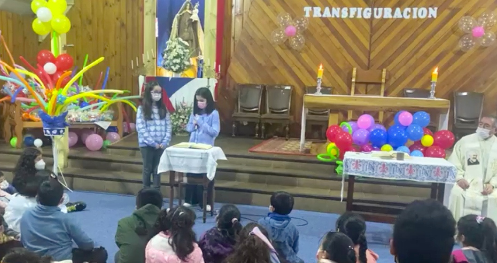 Las lecturas fueron leídas por dos niñas, luego el sacerdote les mostró un video y les fue explicando el Evangelio según San Lucas 9, 28-36, que habla acerca de la Transfiguración del Señor.