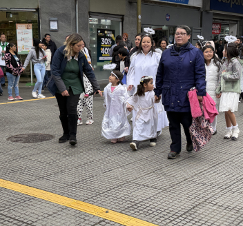 La coordinadora Pastoral de Viceduc, Muriel Valencia, señaló que “fue un bello encuentro donde los más pequeños de nuestras comunidades educativas irradiaron paz y esperanza por las calles de Concepción”.