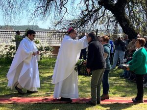 Monseñor Bernardo comentó que “uno nota una verdadera preparación, devoción y cariño por la celebración” y relató que “junto al Padre Claudio y los diáconos, tuvimos la oportunidad de bendecir a las personas, de saludar, de escuchar a adultos mayores, y también niños, enfermos. Muchos de ellos estaban en sillas de ruedas o sentaditos frente al umbral de sus puertas”.