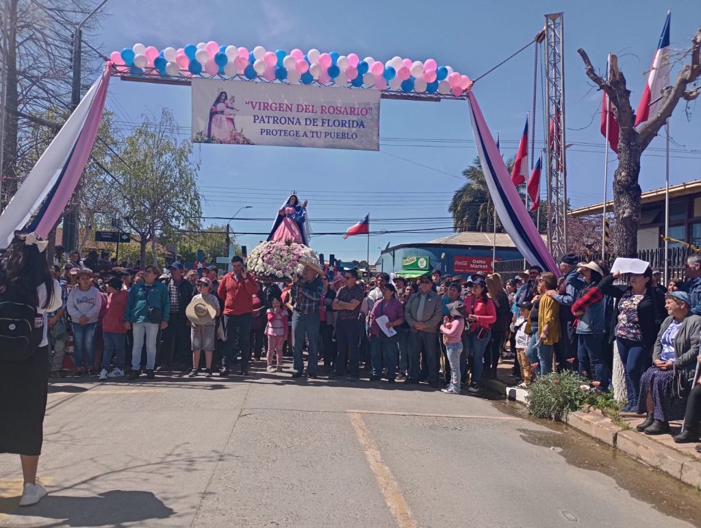 Uno de los puntos donde se detuvo la imagen de la Virgen fue el frontis de la Municipalidad de Florida, donde el Alcalde reconoció el valor de esta tradicional procesión y a la Virgen del Rosario como patrona de la comuna. Además de los saludos protocolares hubo algunos pies de cueca en el lugar.