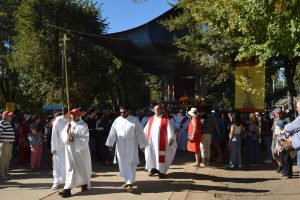 La procesión, que comenzó a las 17:00 horas y fue presidida por el Obispo Auxiliar de Concepción, Monseñor Oscar García, se inició en el Santuario y avanzó por calle Castellón, luego por General Cruz, Freire y finalmente por O’Higgins de regreso al campo de oración.