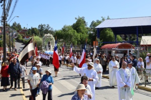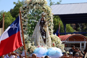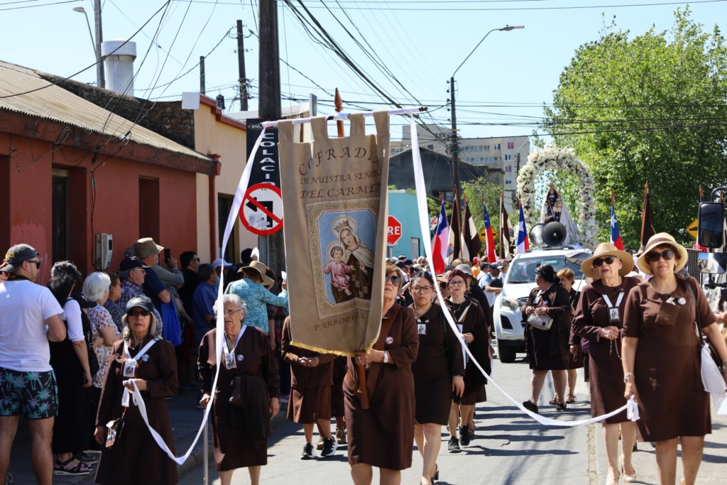 La procesión, que comenzó pasadas las 16:00 horas desde el frontis de la Parroquia Nuestra Señora del Carmen, recorrió la ciudad, donde los vecinos expresaron su amor por la Reina y Patrona de Chile, engalanando sus viviendas con banderas, guirnaldas, flores y bellos altares.