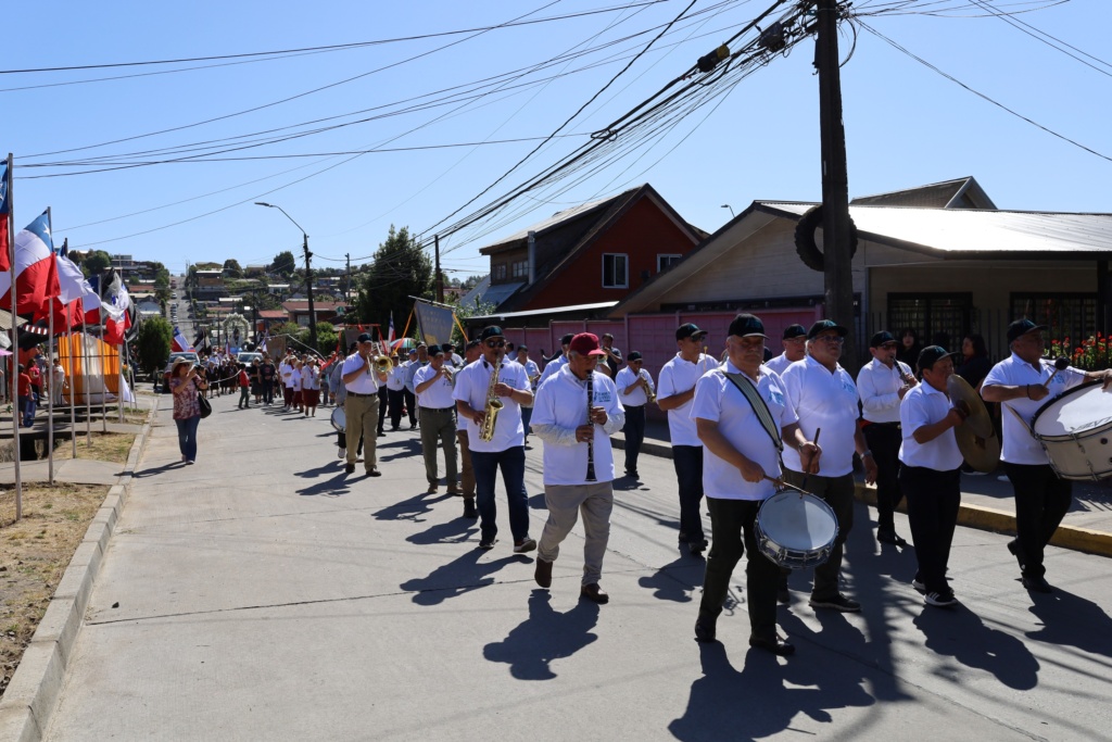 Luego de la procesión, los fieles interpretaron el himno nacional, acompañados por la Banda del Pueblo. Y, tras un pie de cueca, se dio inicio al desfile en honor a la Santísima Virgen.
