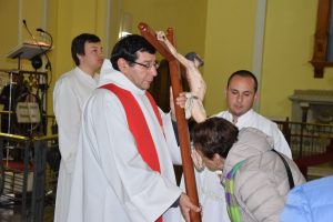 Tras revivir la liturgia de la Pasión y Muerte del Señor, en un ambiente de mucho silencio, se presentó la cruz para adoración de los fieles, que se mantuvo en manos de distintos sacerdotes.