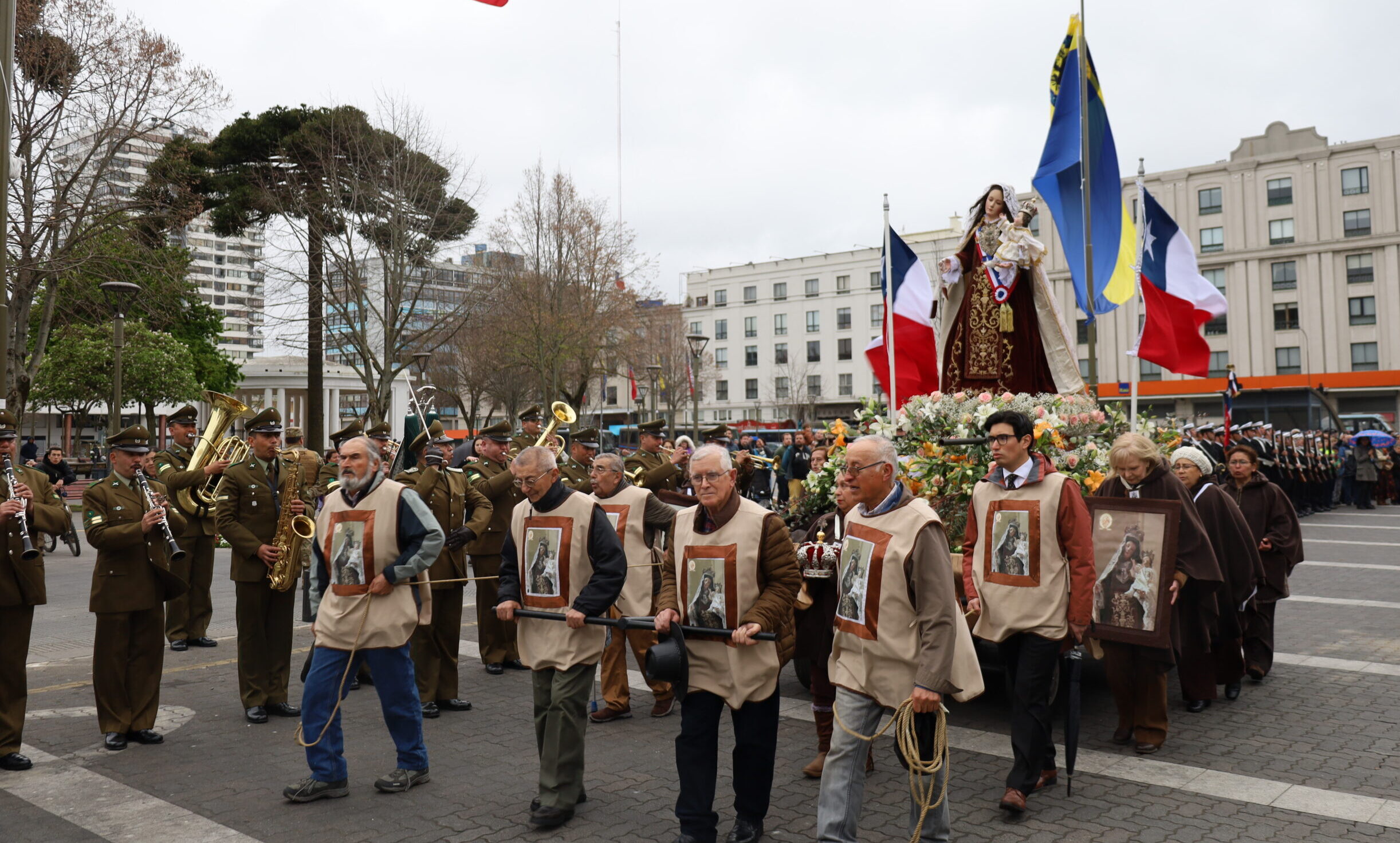 Como en años anteriores, la procesión estuvo acompañada por la banda del Colegio San José de Cabrero. Al llegar a la Catedral, las Fuerzas Armadas y de Orden rindieron honores a la Virgen del Carmen, reafirmando su devoción a la Generala Jurada de Chile. Tras este momento, la imagen fue ingresada al templo Catedral, donde el Arzobispo de Concepción, Mons. Sergio Pérez de Arce, presidió la Eucaristía, concelebrada por los obispos auxiliares, Mons. Bernardo Álvarez y Mons. Oscar García.