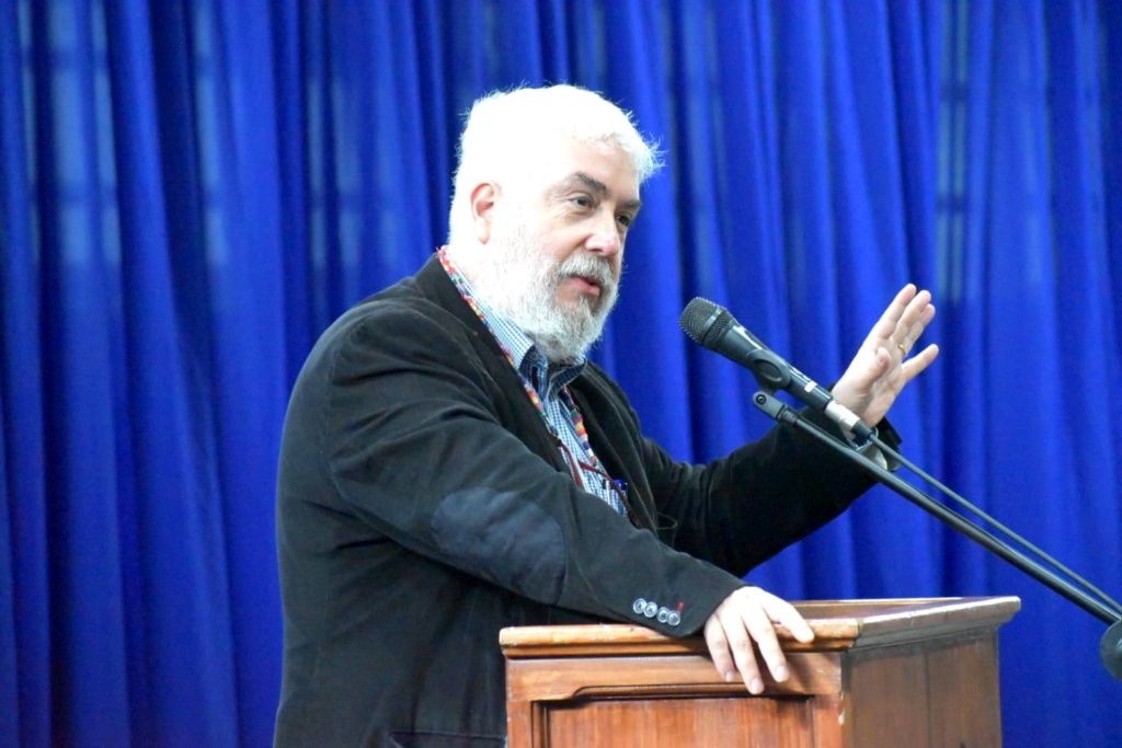La principal exposición estuvo a cargo de Jorge Varela Torres, doctor en psicología y educación con amplia trayectoria en investigación y trabajo con escuelas. Consultado sobre el desafío de la escuela católica para propiciar contextos de bienestar, Jorge Varela enfatizó “creo que las comunidades educativas que tienen proyectos formativos muy potentes, una declaración de preocupación por el entorno, por el prójimo y por los demás, son una gran oportunidad para generar procesos de cambio y de mejora. El bienestar no solamente es un logro individual. No me tengo que preguntar solamente si estoy bien o estoy mal, cuando amplío esa pregunta a tratar de saber qué está pasando con mi compañero o compañera, eso impacta significativamente en las conductas de violencia, agresión y acoso. Por lo tanto, un proyecto formativo que tenga eso como parte de su proyecto educativo, y que uno viva cotidianamente, escuche, declare y forme escuchando eso, es una oportunidad de mejora gigantesca que debería impactar en el bienestar de niños, niñas y adolescentes y también de sus educadores y educadoras”.