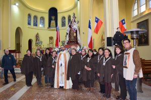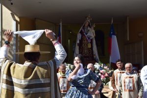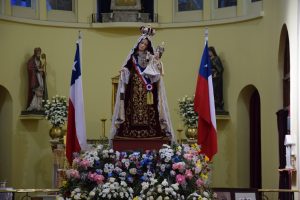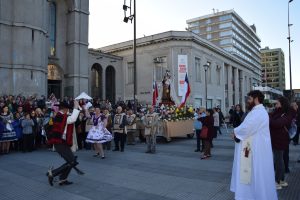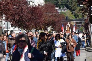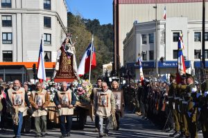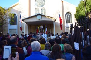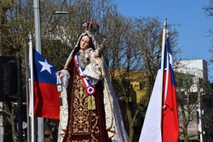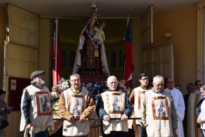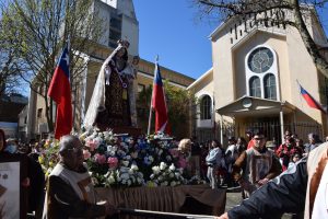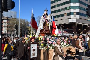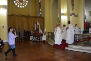 Al término de la Santa Misa, los fieles llevaron en procesión la imagen de la Reina y Patrona de Chile de vuelta a la Parroquia San Agustín, acompañados por la banda de Carabineros.