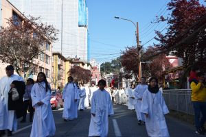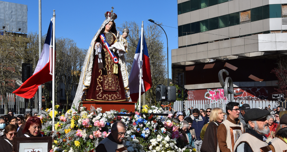 La procesión, que se enmarca en el Día de Oración por Chile, comenzó a las 16:00 horas en la Parroquia San Agustín de Concepción y avanzó por calle Castellón, luego por Chacabuco, Tucapel y finalmente por avenida O’Higgins hasta llegar al templo Catedral.