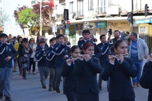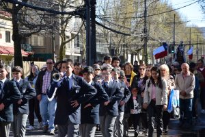 La procesión fue acompañada por la banda del Colegio San José de Cabrero y al llegar al frontis de la Catedral, las Fuerzas Armadas y de Orden rindieron honores a la Virgen del Carmen, Patrona y Reina de Chile.