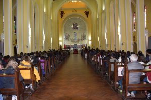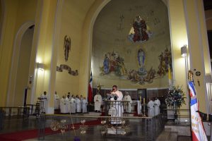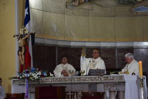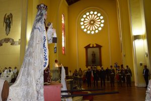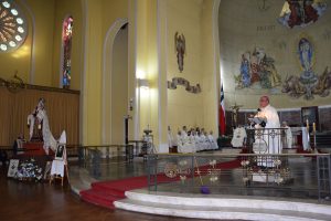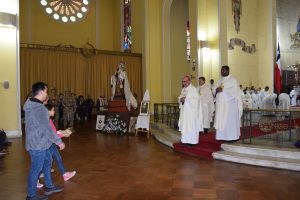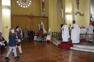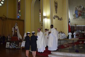 Luego, la imagen de la Generala Jurada de las Fuerzas Armadas y de Orden fue llevada al interior del templo Catedral y el Arzobispo de Concepción, Monseñor Fernando Chomali, presidió la Santa Misa.