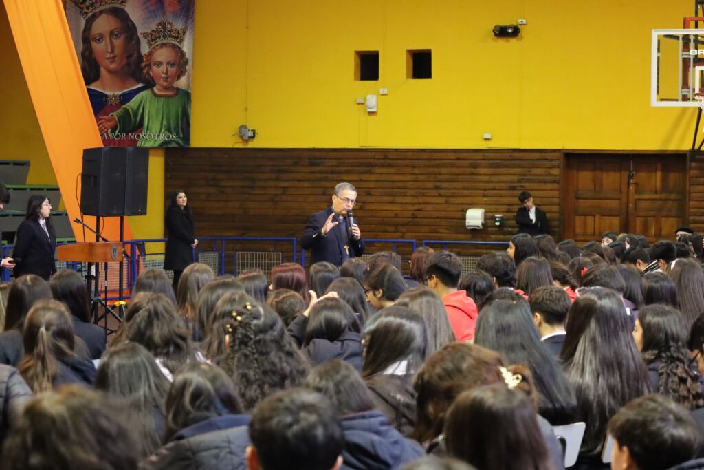 La jornada, que reunió a más de 400 jóvenes de 27 colegios católicos, comenzó con la oración guiada por el Colegio María Inmaculada de Concepción y luego una presentación del coro del Instituto de Humanidades Antonio Moreno Casamitjana de Coronel, lo que creó un ambiente propicio para un día de enriquecimiento espiritual y comunitario.