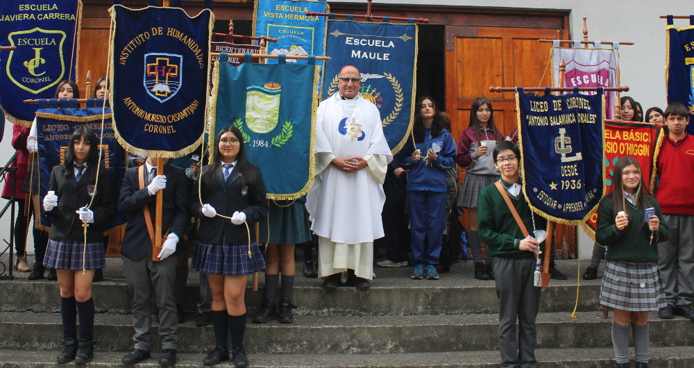 Con la Parroquia San Pedro de Coronel repleta de estudiantes, docentes y autoridades, se celebró la Eucaristía de inicio de año escolar de establecimientos no confesionales, presidida por el Arzobispo de Concepción, Monseñor Fernando Chomali, y organizada por la Pastoral de Profesores Católicos del Decanato del Carbón, en colaboración con la Vicaría Pastoral para la Educación y la Cultura el pasado martes 25 de abril.