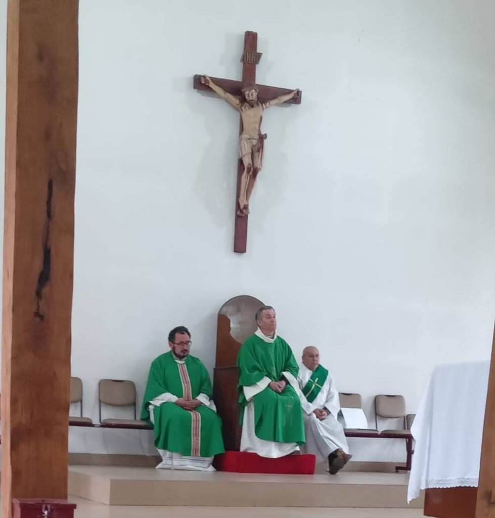 La Eucaristía fue presidida por el sacerdote consiliario de Chile, padre Pedro Gómez, junto al padre Ricardo Valencia, quien será el sacerdote consiliario del nuevo equipo.