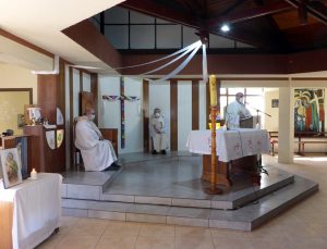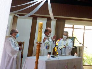 Los participantes en esta celebración eucarística observaron las medidas sanitarias recomendadas en este tiempo de pandemia.