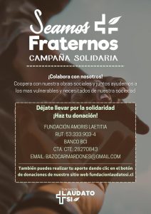 La Fundación Social Laudato Si’, perteneciente al Arzobispado de la Santísima Concepción e impulsada por el Arzobispo, Monseñor Fernando Chomali, realizó mediante sus redes sociales el lanzamiento de una campaña solidaria para recaudar fondos e impulsar su misión de crear, promover y administrar obras sociales en beneficio de las personas más necesitadas y vulnerables de nuestra sociedad.