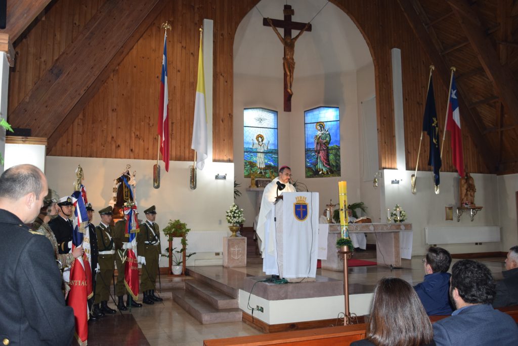 En ese contexto, el Obispo Auxiliar de Concepción sostuvo que “a Jesús se le da todo poder. El poder, sabemos bien, es poder hacer y en el caso de Dios, inclusive es poder dar el ser. Pero en el caso nuestro es poder hacer, es poder también que se manifiesta en el servicio. En virtud de este poder, Jesús, envía un servicio muy particular a su Iglesia, una misión, que es algo también propio de nuestra tradición, pero que llevamos a la dimensión de las naciones, de los pueblos o de la misma Armada, todos nosotros tenemos una misión, tenemos una vocación, tenemos un lugar en este mundo”.
