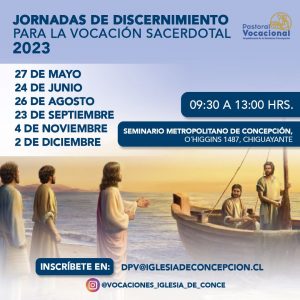 La Pastoral Vocacional invita a las Jornadas de Discernimiento para la Vocación Sacerdotal, que se realizarán en el Seminario Metropolitano de Concepción, ubicado en O’Higgins 1487, Chiguayante.