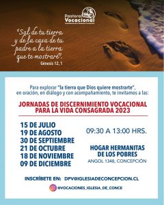 “Sal de tu tierra y de la casa de tu padre a la tierra que te mostraré”, con estas palabras del Libro del Génesis, la Pastoral Vocacional de la Arquidiócesis de Concepción invita a las Jornadas de Discernimiento Vocacional para la Vida Consagrada.
