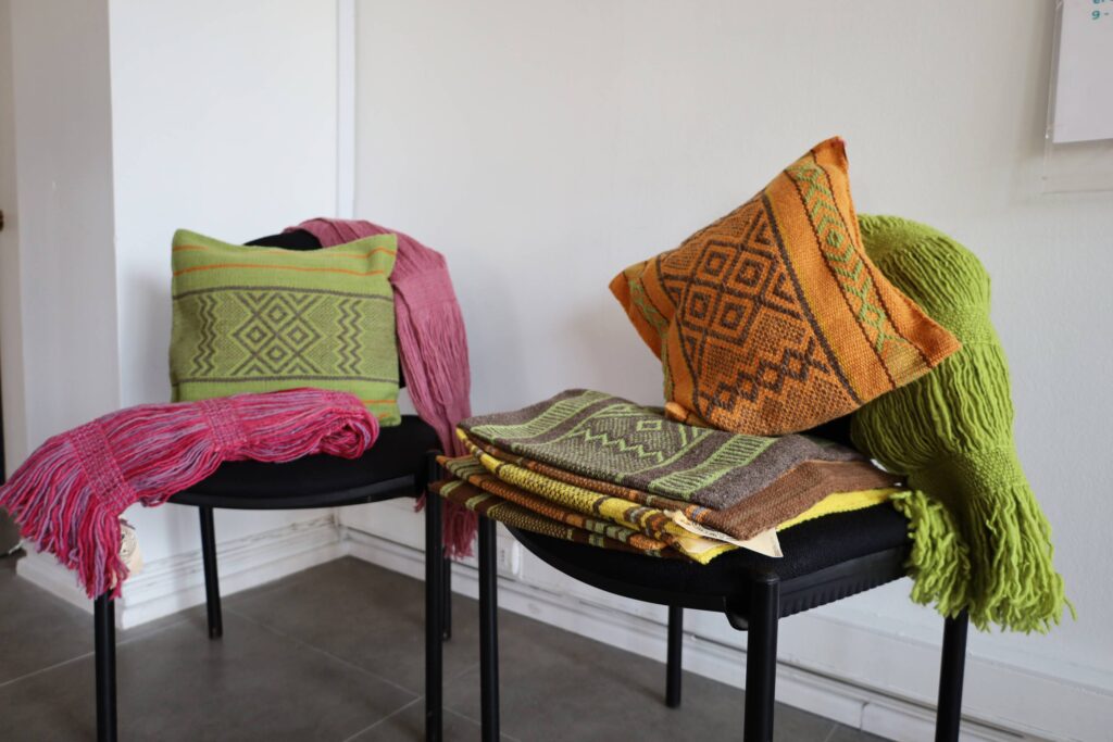 En ese sentido, explicó que “para nosotros es importante cuando nos da un color bonito, porque depende de la naturaleza, de las estaciones del año. Teñimos con flores, con frutos y con hojas, pero las raíces de los árboles no las ocupamos porque sabemos que le estaríamos haciendo un daño. Entonces, nosotros también trabajamos todo lo que es el cuidado del medioambiente. Para nosotros la naturaleza es importante porque de ahí sacamos nuestros colores”.
