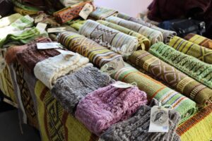 Respecto de los diseños de los tejidos, señaló que “como organización trabajamos doce iconografías mapuches, cada una de las cuales tiene su significado. Así que nuestros tejidos tienen mucha historia del pueblo mapuche”.
