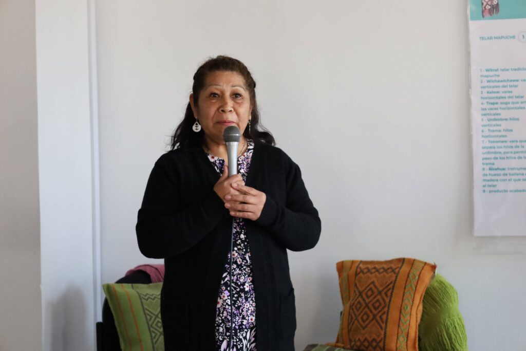 Albertina Huenuman sostuvo que “las personas que compran un tejido de Relmu Witral se llevan un producto para toda la vida, un trabajo lleno de la historia del pueblo mapuche, porque todo tiene significado”.