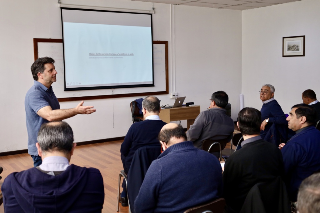 El presbiterio de la Arquidiócesis de Concepción participa en una nueva Jornada de Formación Permanente, centrada en el tema “Etapa del desarrollo humano y sentido de vida”, guiada por el psicólogo laboral Jorge Jara Cassot.